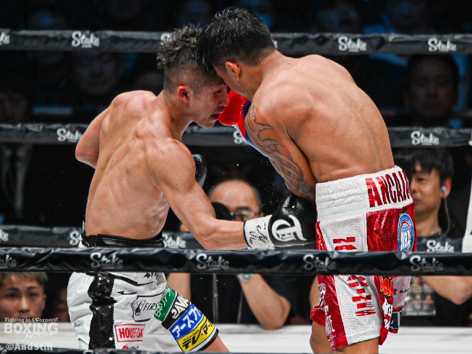 接近戦では、手数を緩めないアンカハスの連打をスウェイとダッキングで、ディフェンス力の高さを披露した拓真。中間距離から先に踏み込んで倒す努力を続けたが、タフなアンカハスは、手数で応戦。左と右の返しで、拓真を中に入れさせなかった。試合が動いたのは、9回、右ボディアッパーを2発見舞った拓真が、この試合初のダウンを奪うと。膝をついたアンカハスは顔を歪めたまま立ち上がれず。拓真が初防衛戦に成功した。