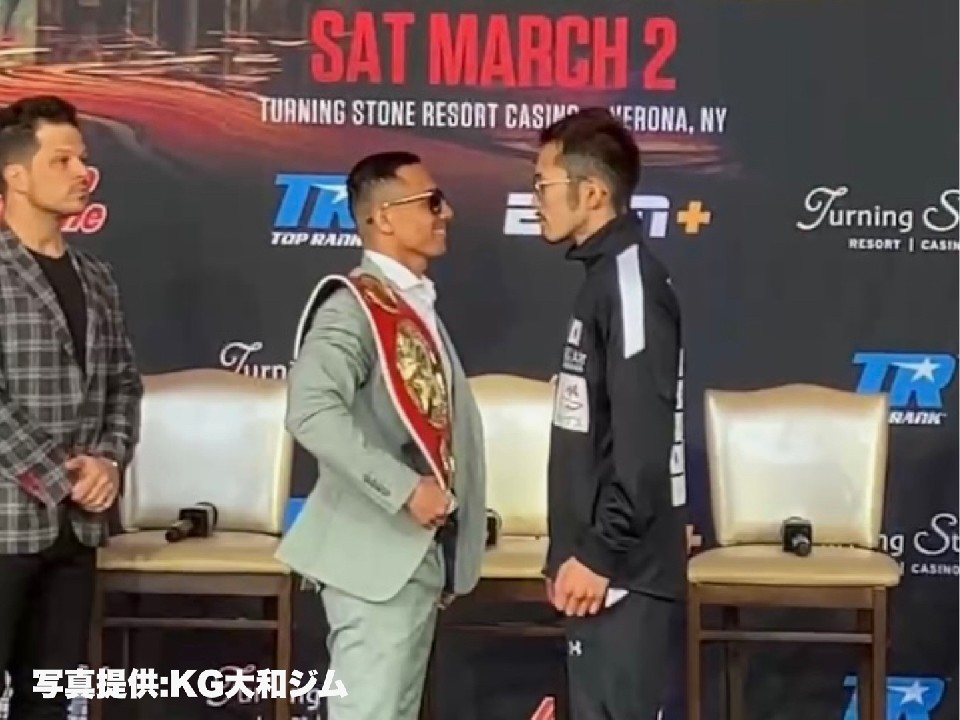 日本時間の3月3日(日)に世界初挑戦を迎える阿部麗也(30=KG大和)が米国時間の29日、IBF(国際ボクシング連盟)フェザー級チャンピオンのルイス・アルベルト・ロペス(34=メキシコ)と会見で顔を合わせた。