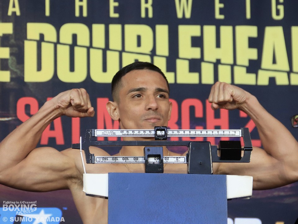 計量後に取材に応じたロペスは「相手はとてもよく動く選手なので、先回りすることが重要になってくる」と試合のキーポイントを挙げた。この試合に向け、サウスポー選手とのスパーリングを重ねて万全のコンディションに仕上げてきた。