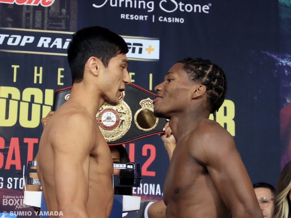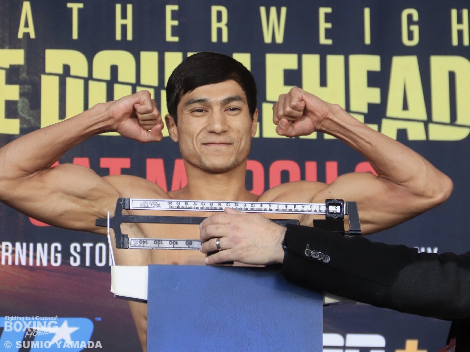 WBA(世界ボクシング協会)フェザー級王座決定戦の前日計量が日本時間2日に、米国ニューヨーク州ベローナ・ターニングリゾート&カジノで行われ、同級1位のオタベク・ホルマトフ(25=ウズベキスタン)と同級2位のレイモンド・フォード(24=米)が計量に臨んだ。