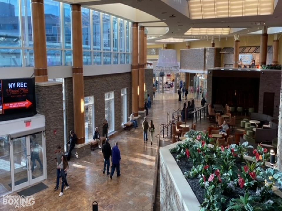 カジノからさらに奥に進んだ場所でボクシングが行われる。試合会場の横に特設ブースを設置し、前日計量が行われた。場所的にホテル宿泊者が通る所ではないらしく、前日計量の場は関係者がほとんどだった。