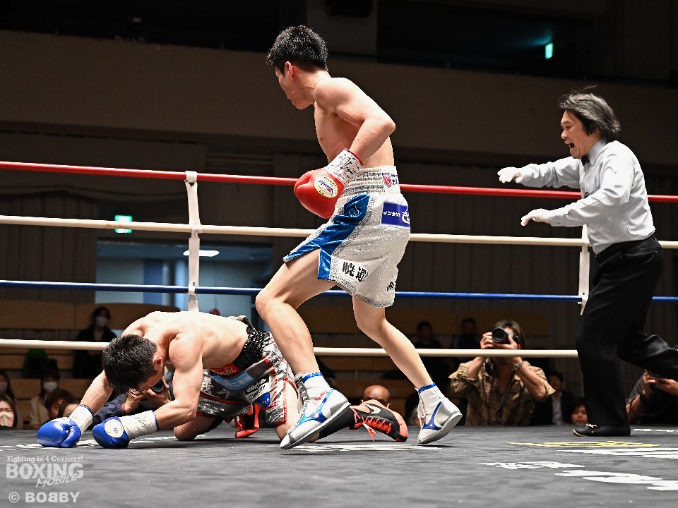 序盤は、距離の探り合いで比較的静かなスタート。3回、サウスポー富施がジャブからワンツーにつなげると、左アッパーで迎え撃ちペースを掌握。4回、杉本は左フックで反撃に転じたが、富施は冷静に対応すると、5回に左ボディストレートから左ストレートを振り抜き、ダウンを演出。再開後、左ストレートで杉本をキャンバスに沈めた。