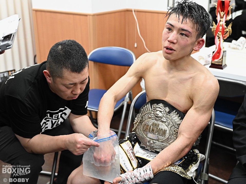 リング上の勝利者インタビューで、飯村は「12月からしっかり準備してきた。この勝利は、ジムのサポートのおかげです」と、チームに感謝の気持ちを伝えた。世界への意識も芽生えた飯村は、WBA王座に君臨するユーリ阿久井政悟(28=倉敷守安)の名前を挙げて、「ユーリ選手が世界のベルトを持っていて、桑原(拓=29・大橋)選手も挑戦する。日本に(世界の)ベルトがあるとモチベーションになる。日本のベルトを持ってる限り、狙うは世界。応援よろしくお願いします」と、ファンの声援に応えた。