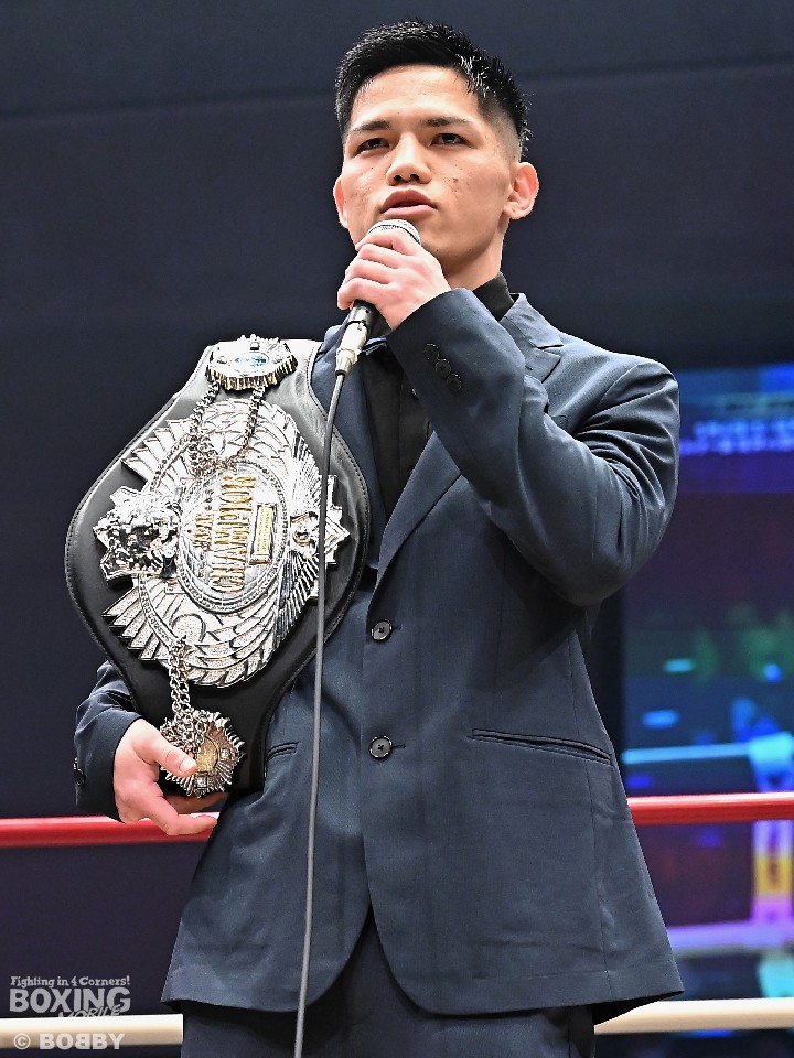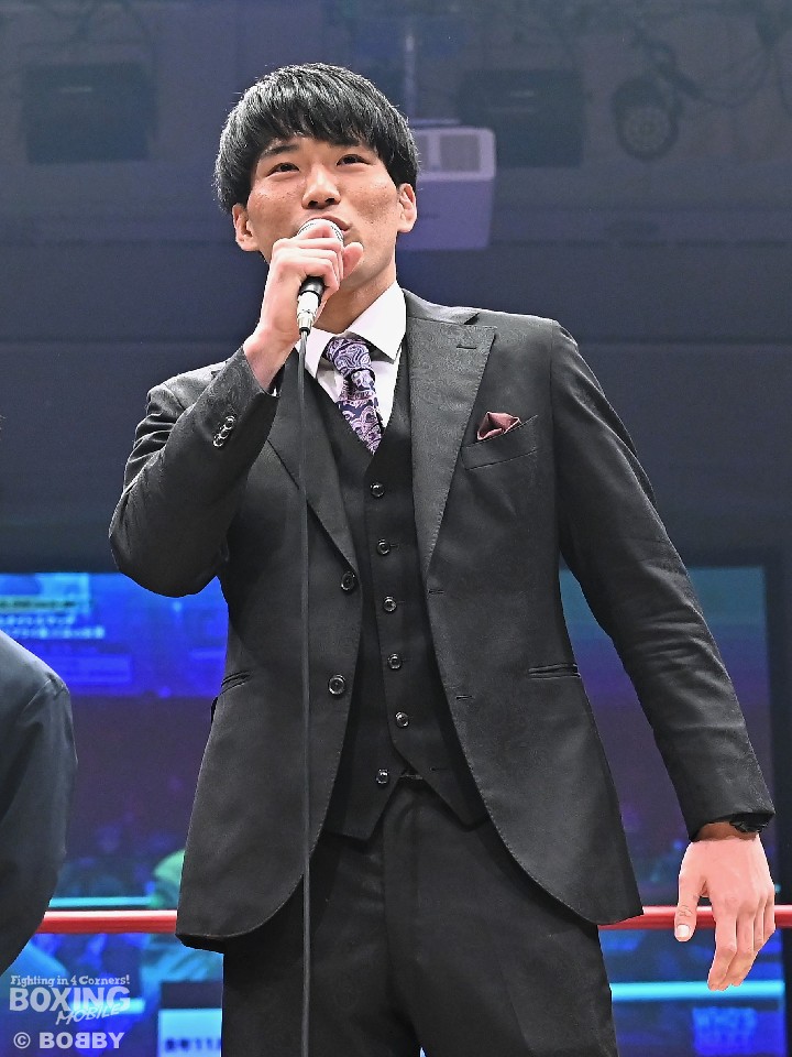 「坂井選手の優しいコメントでしたが、最強の挑戦者として、ここで勝って、前に進みます。日本に勝って、世界に行けるのを見せます。ベルトを取ります」