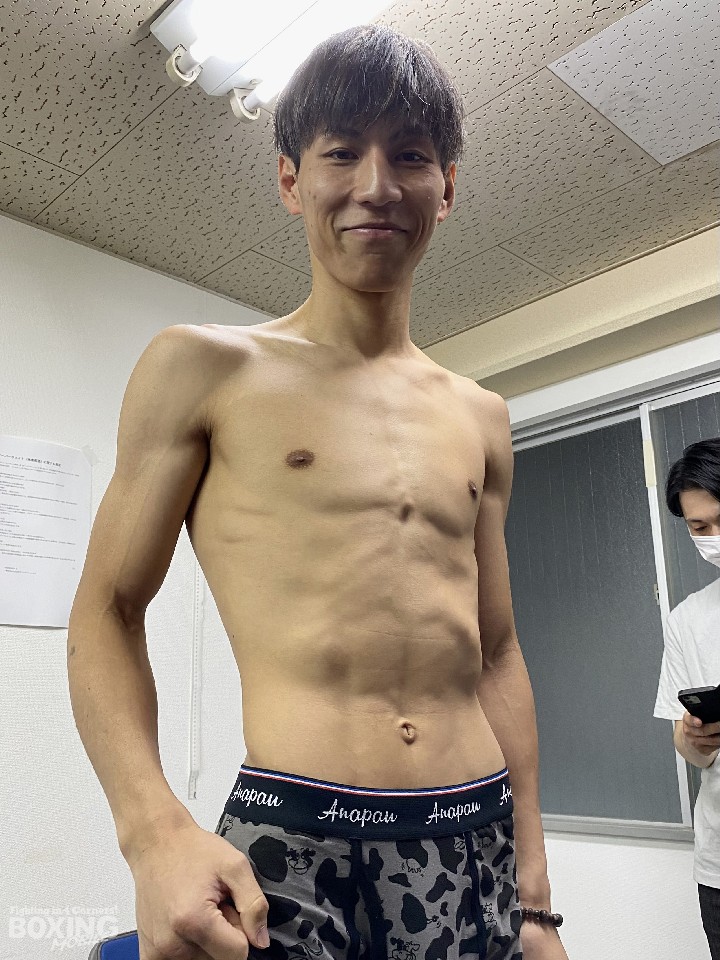 これが2度目の防衛戦の下町は、スーパーバンタム級リミットを100g下回る55.2kgでクリアした。「いつも通り、しっかりと落ちて体調は良い」と、仕上がりの良さをアピールした。
