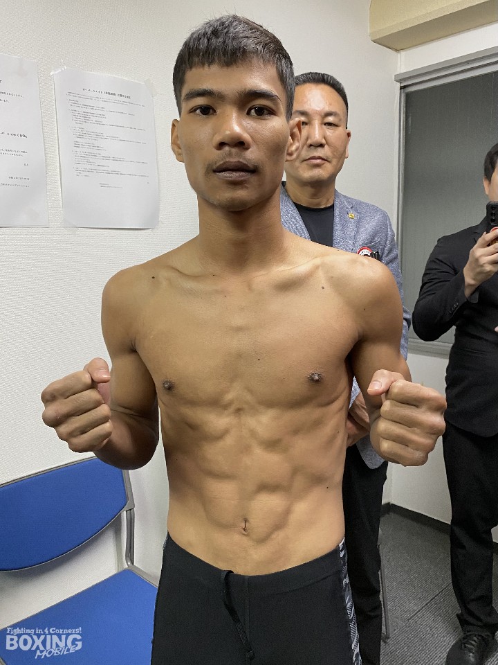 ファハルドは、昨年8月の王座決定戦で初回KO勝ちで戴冠し、これが初防衛戦だ。ライトフライ級リミットを400g下回る48.5kgでパスすると、「計量を終えてハッピーだ。相手は良い選手だが、明日は倒しにいくよ」とKO防衛を約束した。