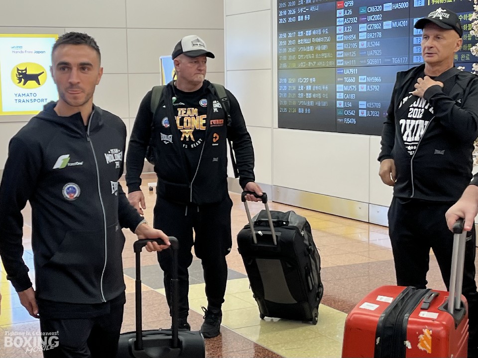 今回の来日は、2度目というマロニー陣営は、「昨年、大阪に来たときには、たこ焼きとお好み焼きを堪能したよ。日本食は大好きだよ。試合が終わったら食べたいね」と談笑しながら、空港取材にも丁寧に答える余裕があった。