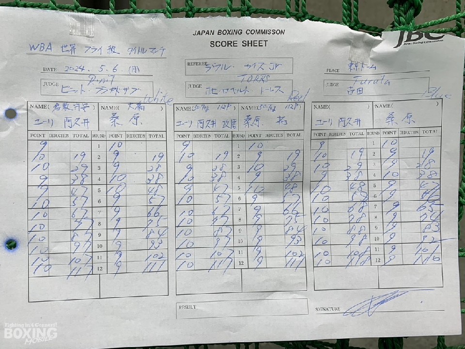 試合後のリング上でマイクを向けられたユーリは、東京ドームで試合を組んでくれたスタッフ、そして、チームと家族に感謝すると、3年ぶりに対戦した桑原とのビッグマッチを「久々の対決で、(桑原は)超強くなってて、1ラウンドに効いたパンチがあった。でも、今日は僕の日でした」と振り返り、「会長が途中で、『娘が応援してるぞ』と鼓舞してくれた。次も頑張ります」と、ファンの大声援に応えた。