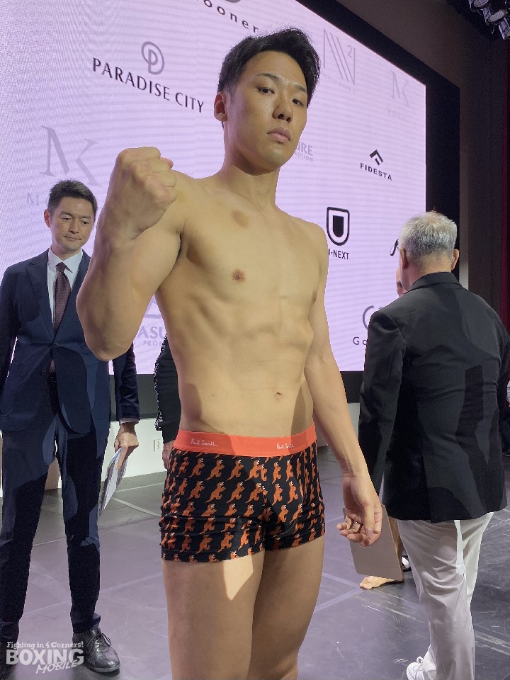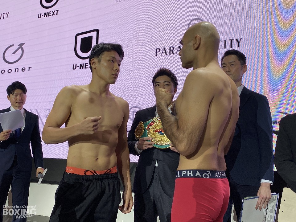 1回目の計量は、700gオーバーしたシンだが、再計量ではリミットを500g下回る72.0kgでパスした。昨年11月のOPBF東洋太平洋スーパーミドル級に挑んで以来、2度目のタイトル挑戦のシンは、「強い相手に勝つために、ここまできた。自分のボクシングを貫いて勝ちにいく」とベルト奪取に闘志を燃やした。