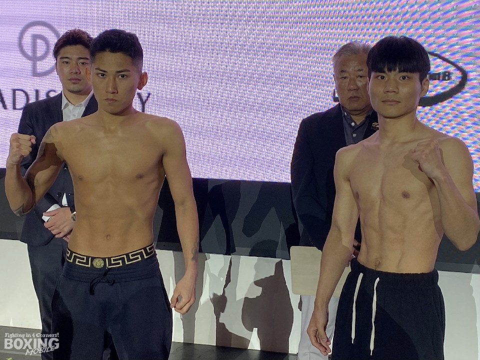 第2試合スーパーバンタム級6回戦では、鳥井士恩(22=角海老宝石)とヤン・ヒョンモ(23=韓国)が対戦する。鳥井はリミットの55.3kgでクリアした。初の海外遠征に臨む鳥井のパフォーマンスにも注目!