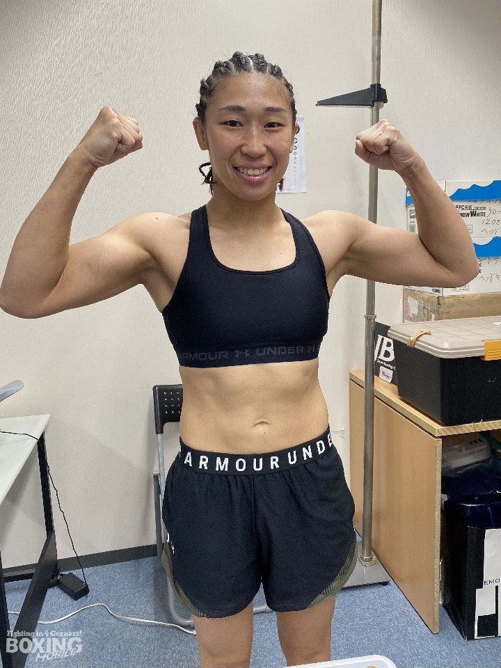 同門でWBO-AP女子バンタム級王者・ぬきてるみ(35)が、6月9日(日)にタイトル初防衛に成功した。柳井は「ぬき選手に良いバトンをつなげてもらったので、私も良い勝ち方をしたい。明日は判定までいかない」と、KO防衛に自信を示した。