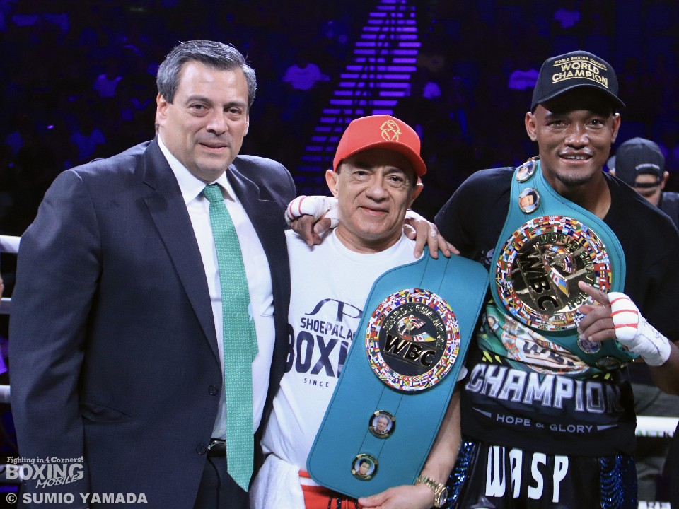 サウスポー対決となったWBC世界スーパーライト級暫定王座決定戦。インファイトを仕掛けるラッセルに対し、長身のプエロは右フックを合わせた。強引に攻め込むラッセル、カウンターを合わせてポジションを移すプエロ、両者がお互いにペースを奪い合う中盤戦。プエロは左ストレートのタイミングが合い始め、ラッセルは強引にボディにパンチを集めたところ、9回にプエロがホールディングの減点を課された。それ以降、スタミナが落ちたプエロが撃ち合いに転じ、最終回まで両者が打撃戦で、左を振り抜き合って終了。判定は、ジャッジ1者が118-109でラッセルを支持したが、2者は115-112、114-113でプエロを支持した。これにより、暫定ながらプエロが世界王座返り咲きを果たした。