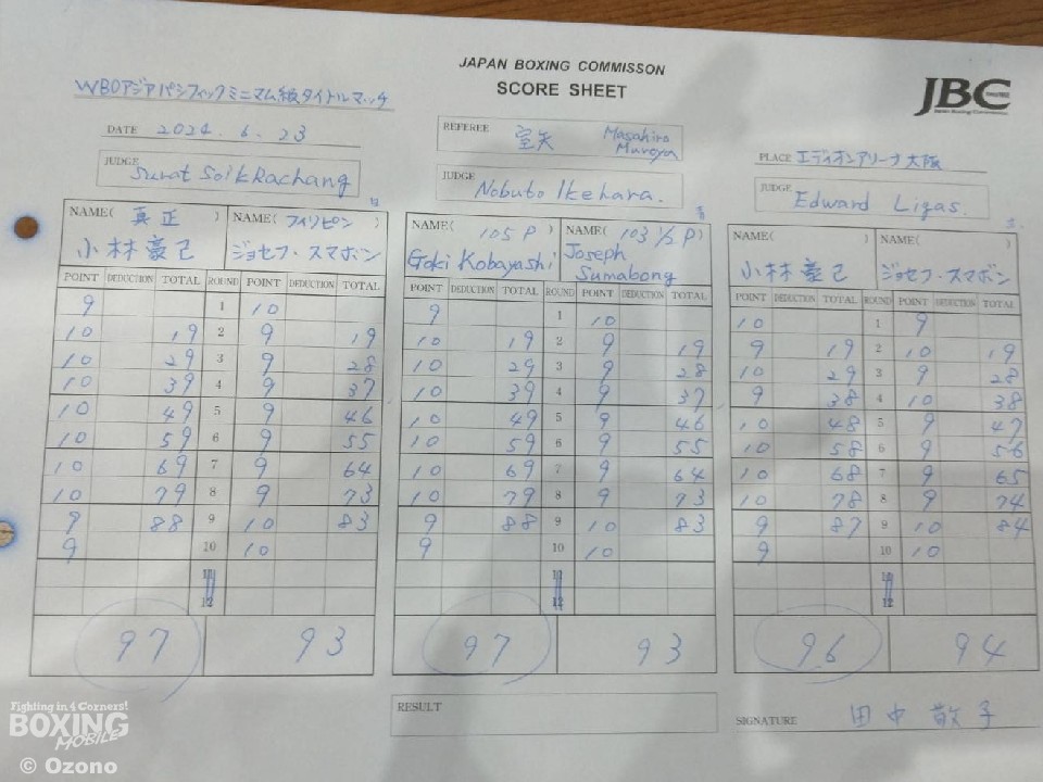 WBO-APミニマム級タイトルマッチが23日、エディオンアリーナ大阪第二競技場で行われ、初防衛を目指してリングに上がったチャンピオンの小林豪己(25=真正)と、挑戦者で同級4位のジョセフ・スマボン(比)が対戦した。