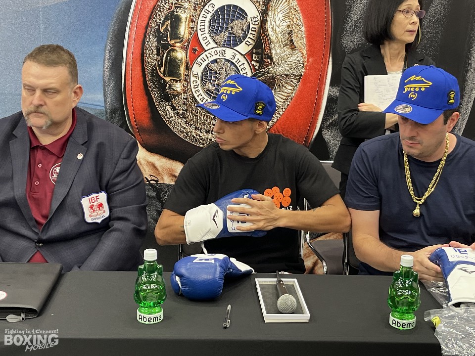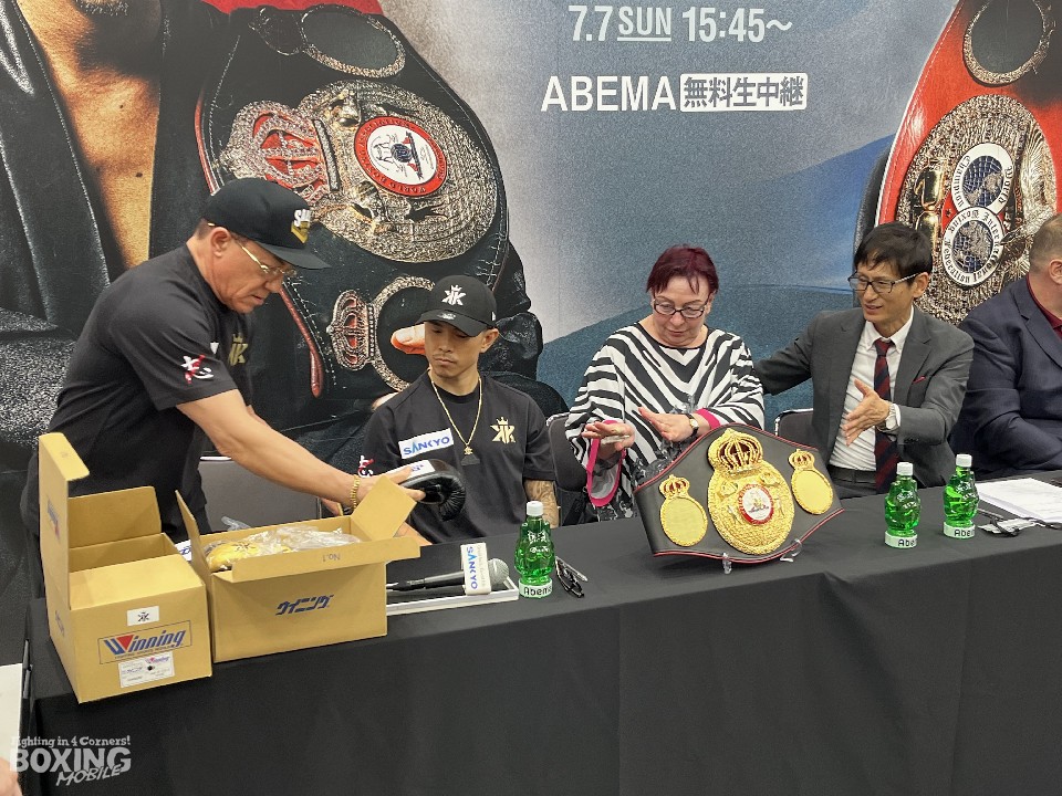 調印式を無事に終えた両選手は、明日の前日計量に備え、「自分自身に集中している」と口を揃えた。この日は、グローブチェックも行われ、井岡はブラックとゴールドでカラーコーディネートされた日本製ウィニング社のグローブを着用することを決めた。一方、マルティネスは、ブルー一色の米国製エバーラスト社のものを着用する。