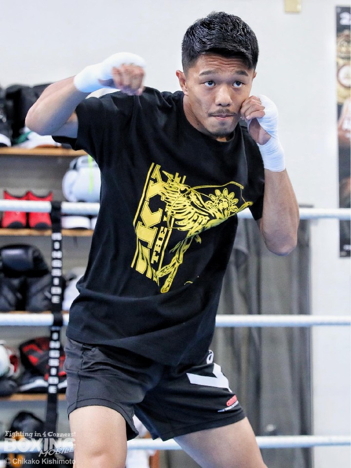 ロサンゼルス合宿から帰国後もスパーリングを続けており、8日(月)には、日本バンタム級7位の梅津奨利(26=三谷大和)と同門でA級ボクサーの齋藤哲平(23)を相手に、13ラウンドのスパーリングで腕を磨いた。「当初は、12ラウンドの予定だったが、リモートで見ていたルディ(ルディ・エルナンデストレーナー)が『エクストラだ』と言ったので、もう1ラウンド増えました(笑)」(中谷)
