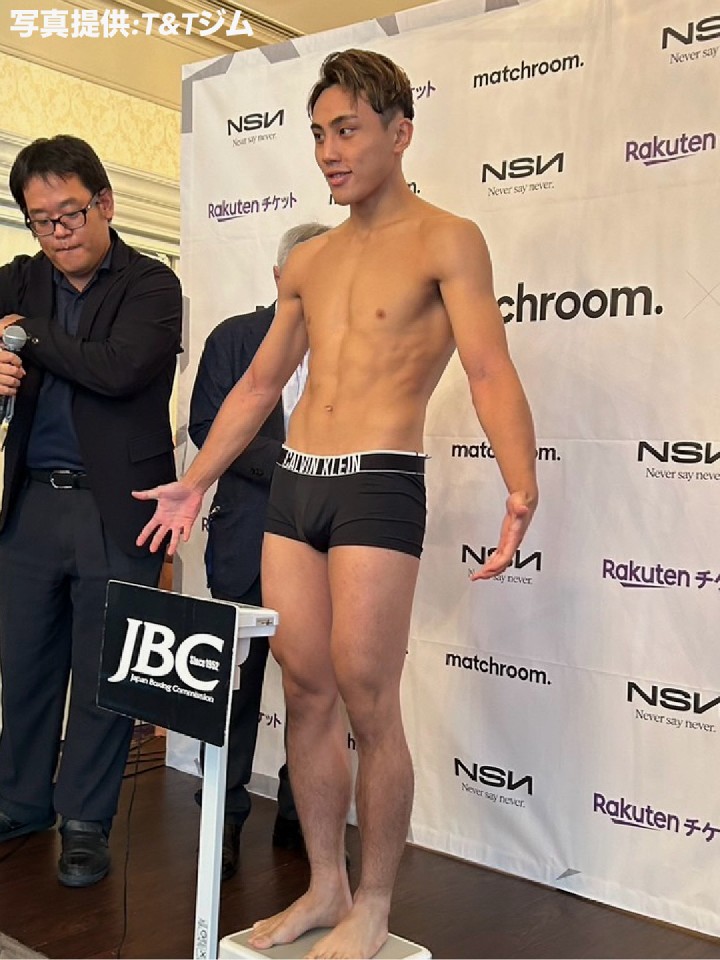 「PRIZE FIGHTER ミドル級トーナメント」の前日計量が14日、大阪市内のホテルで行われ、出場選手が顔を揃えた。準々決勝で対戦する日本・WBOアジアパシフィック・ミドル級王者の国本陸(27=六島)と日本同級5位の可兒栄樹(22=T&T)が対峙した。