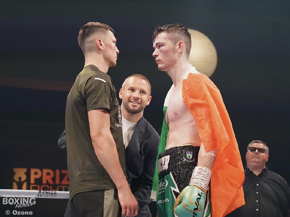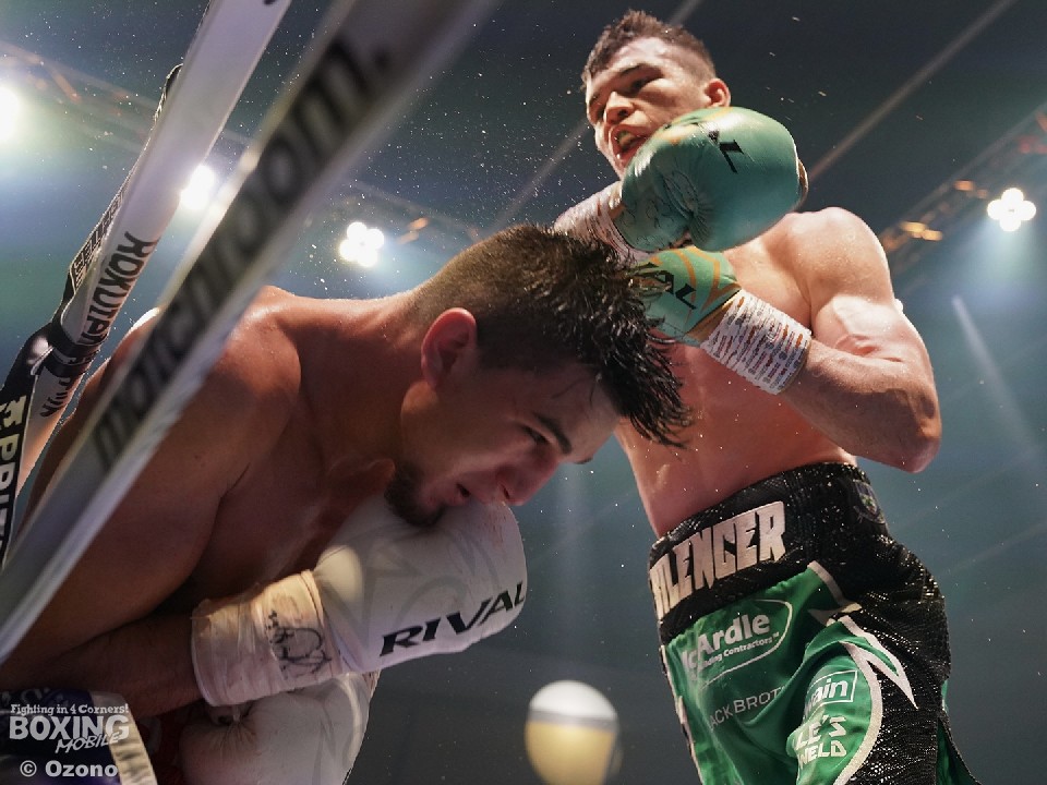 アーロン・マッケンナ(25=アイルランド)とシェオバニー・エステラ(23=米国)の対決は、マッケンナが序盤から接近戦に持ち込んで、エステラを手数で圧倒。最後はマッケンナの連打にエステラのガードが遅れたのを見て、レフェリーが試合を止めた。