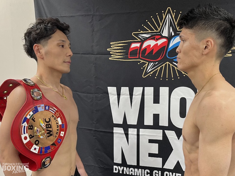 OPBF東洋太平洋ライト級タイトルマッチの前日計量が18日、都内の日本ボクシングコミッション(JBC)本部事務局で行われ、チャンピオンの鈴木雅弘(29=角海老宝石)と、挑戦者で元日本チャンピオンの宇津木秀(30=ワタナベ)が顔を合わせた。