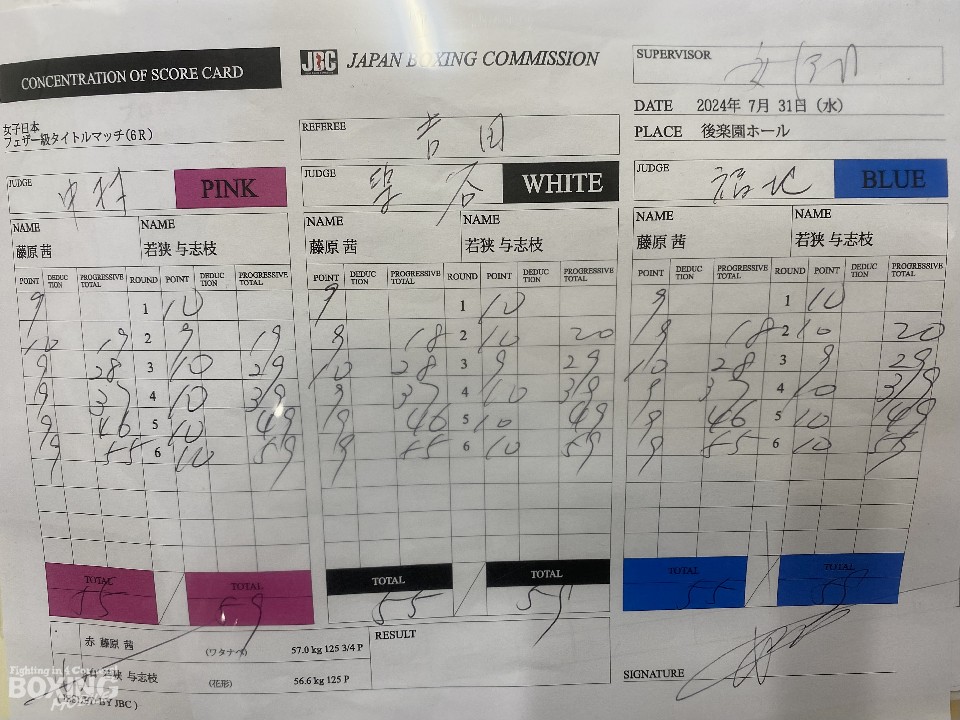 日本女子フェザー級タイトルマッチが、後楽園ホールで開催される「DANGAN」のメインイベントにて行われ、王者の藤原茜(37=ワタナベ)と同級1位の若狭与志枝(36=花形)が壮絶な打撃戦を繰り広げた。
