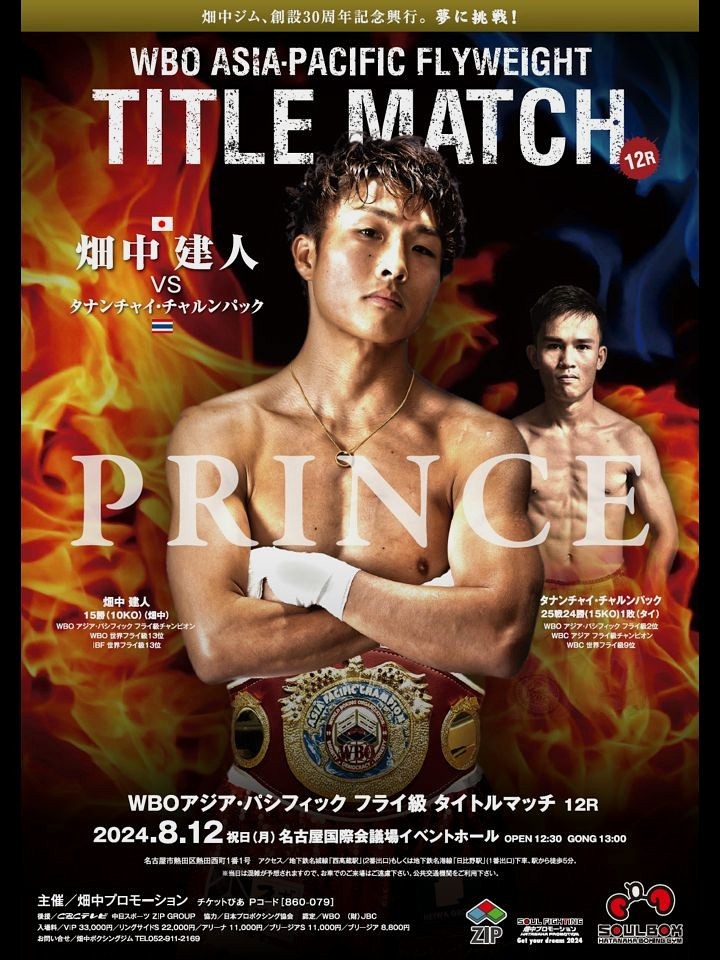 この階級は、日本の若い選手達も力をつけてきている。WBO-AP王者の畑中建人(26=畑中)は、8月12日(振休・月)、名古屋国際会議場イベントホールにて、同級2位で、WBC世界8位・WBA世界15位のタナンチャイ・チャルンパック(24=タイ)の挑戦を受ける。