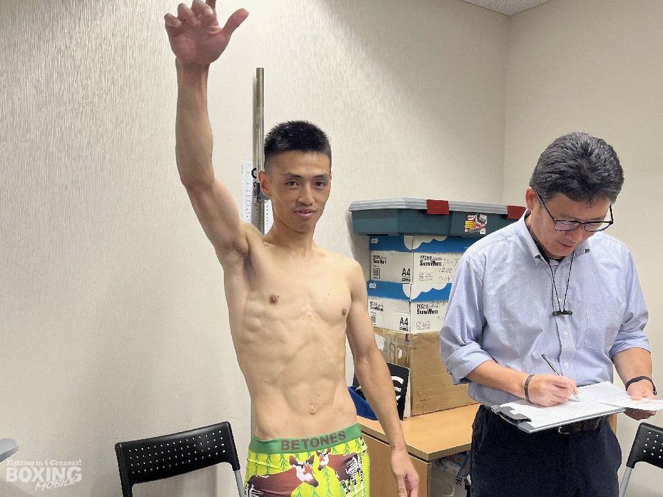 51.9kgで計量を一発でクリアした川浦は、「夏に試合をするのは初めてだが、アマでもやってるし、汗もかけるし、いい感じで調整できました」と、取材に答えた。