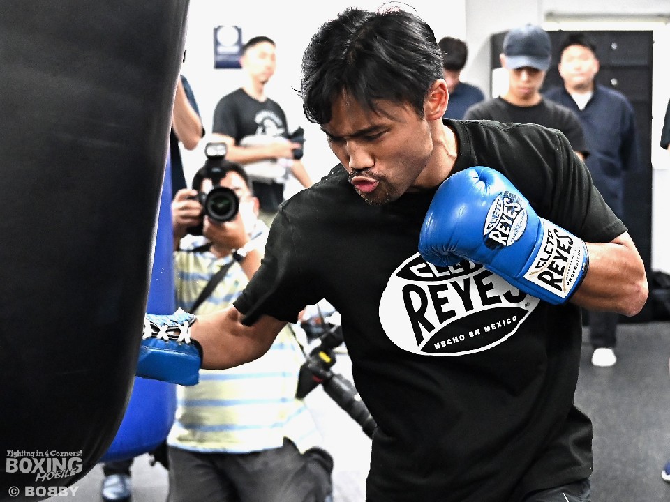 公開練習後に囲み取材に応じた八重樫氏は、「顔色も良くて、いつもの比嘉大吾。打つ時の癖が出ていたので、やっぱりそうかと。野木さんの裏をかく。比嘉選手で一番怖いのは気持ちが乗っている時」と警戒心を強めると、「敬意を持って戦う。どっちみち、どちらかが倒れる試合になる」と、KO決着を予想した。