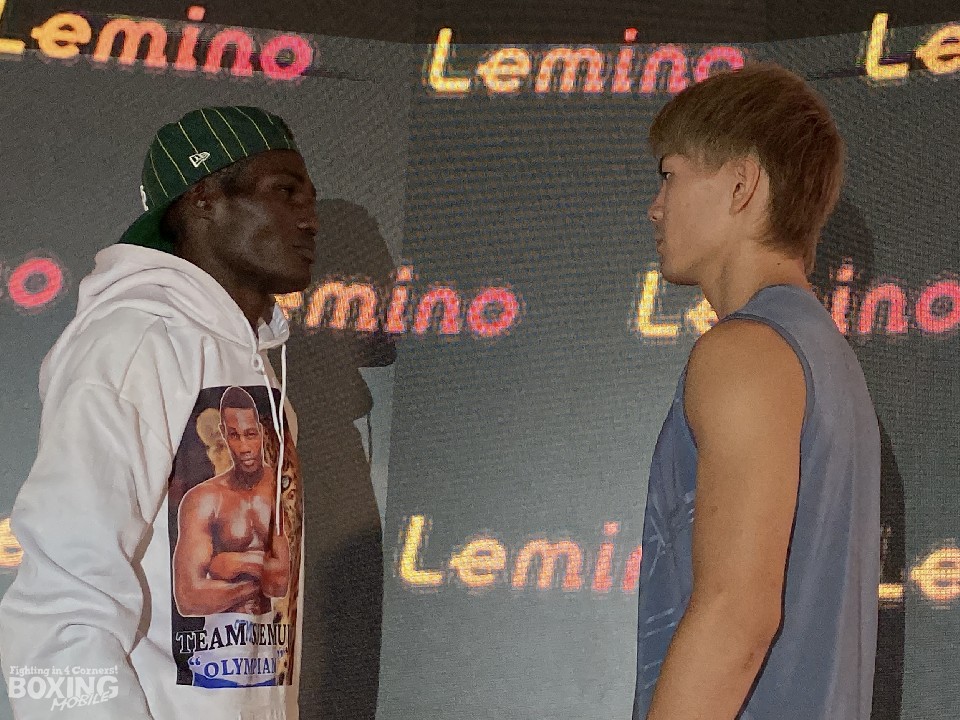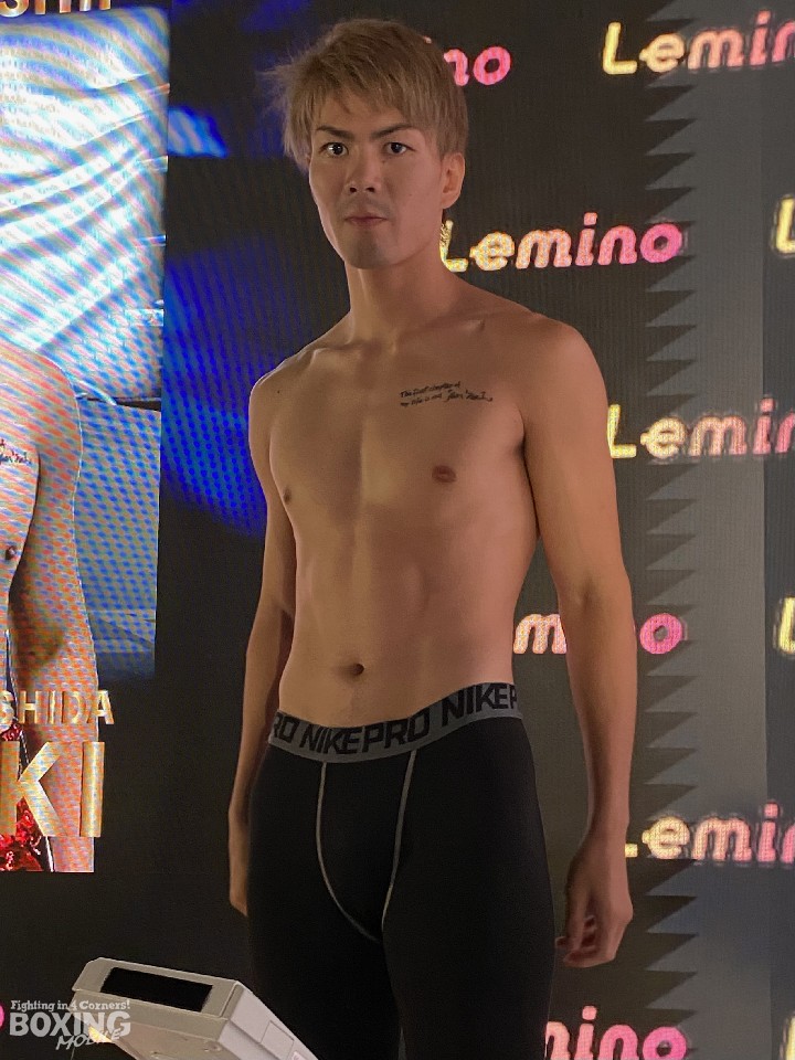 東京五輪ウガンダ代表で、プロ転向7戦目にして日本王座に挑むデビッドは、ウェルター級リミットを900g下回る65.7kgでクリアした。「普段からしっかりと練習しているので、思ったより体重が落ちた」と、万全のコンディションをアピールした。