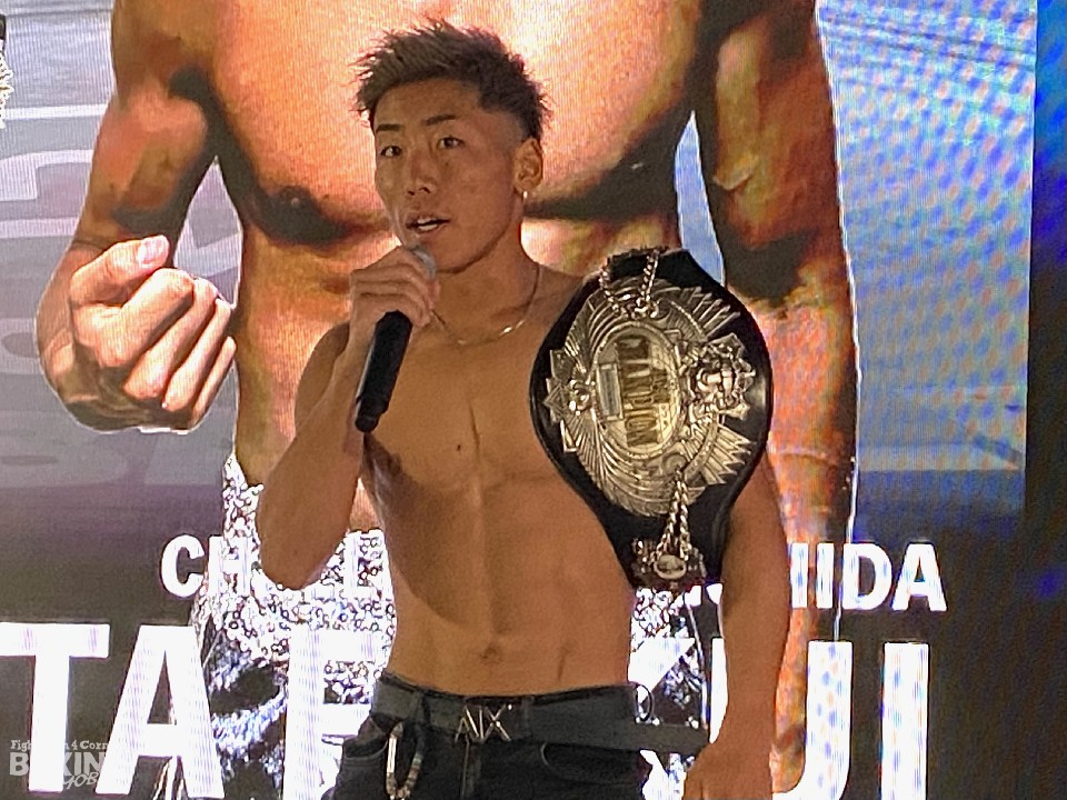 一方、タイトル初挑戦の福井は、「タイトルマッチだからといって、気持ちはいつもと変わらない。明日は絶対に面白い試合になる。その上で自分が勝つ」とベルト奪取を誓った。