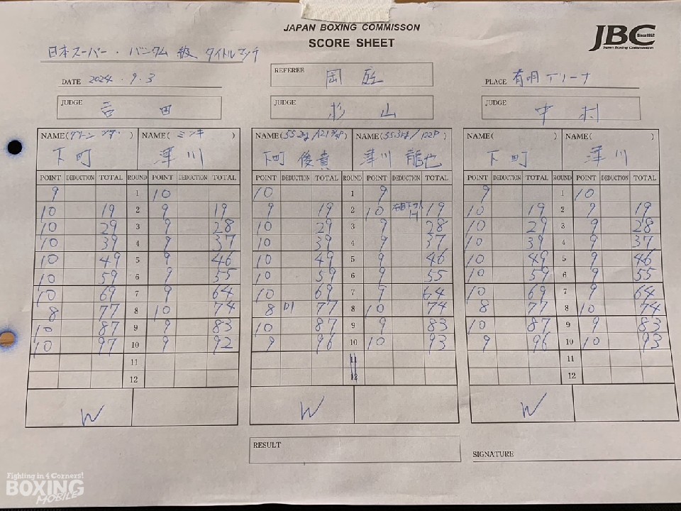 8ラウンドにダウンを奪ったシーンに関して「練習のイメージ通りにやれたが、それ以上が取れなかった。決めにいったが、下町選手の上手さもあり、仕留めきれず自分の実力不足でした」と振り返り、「今日、ベルトを獲ること目標にやってきたので、ベルトしかない」と再起を誓った。