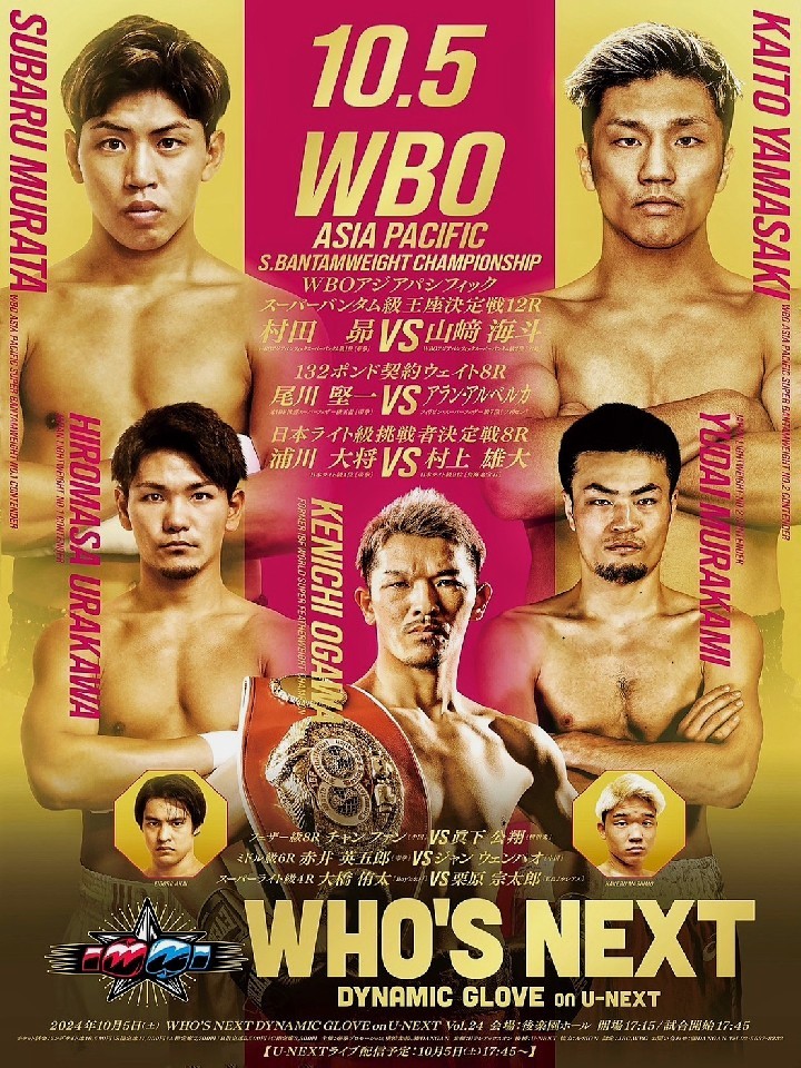 ライト級は、同級1位の浦川大将(27=帝拳)と同級2位の村上雄大(24=角海老宝石)が10月5日(土)に後楽園ホールで対決。この階級の日本チャンピオンは、IBF世界ランキング10位の三代大訓(29=横浜光)。お見逃しなく!