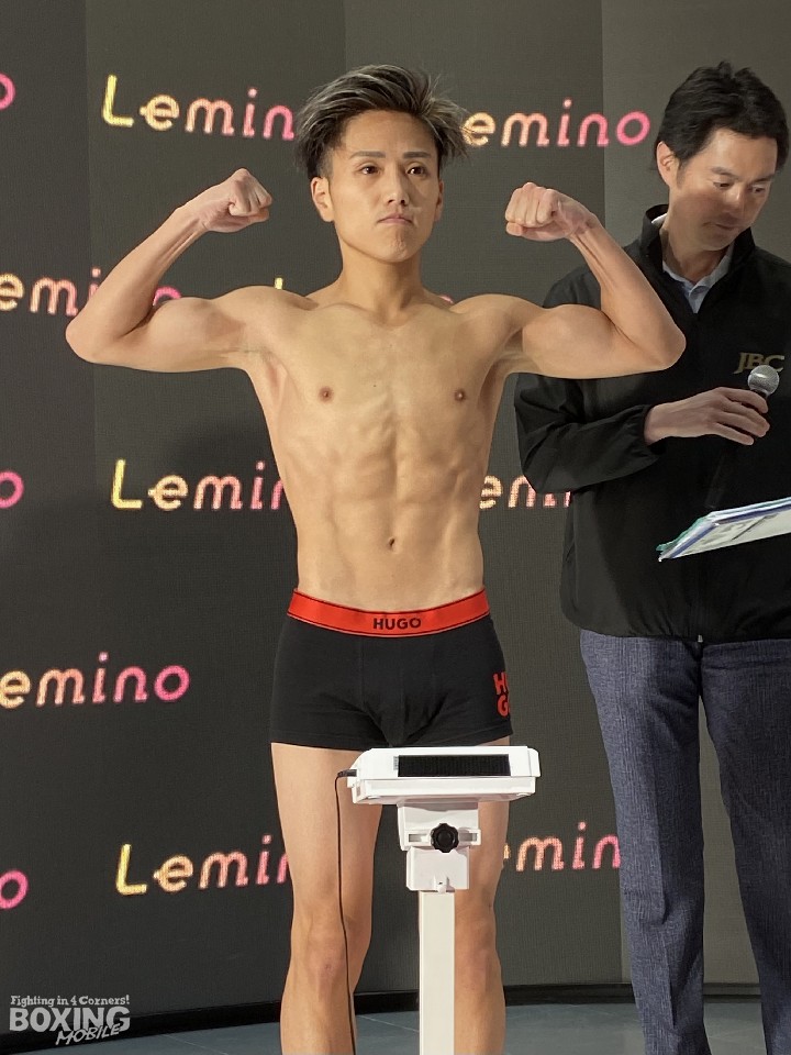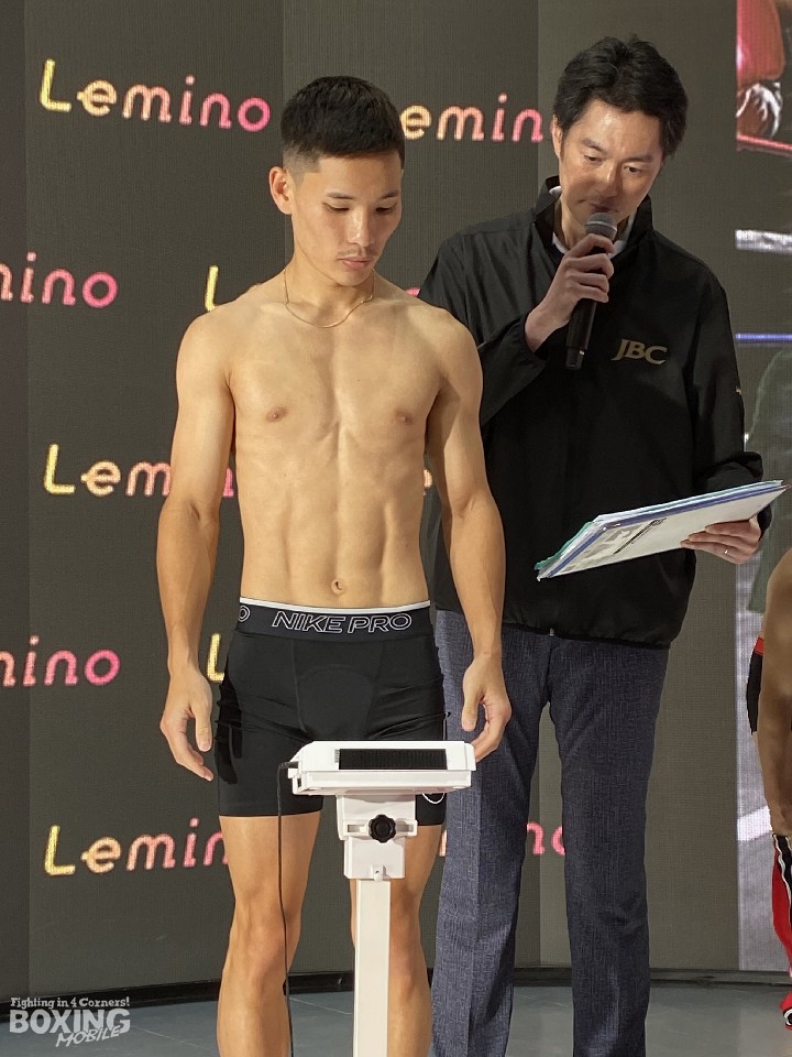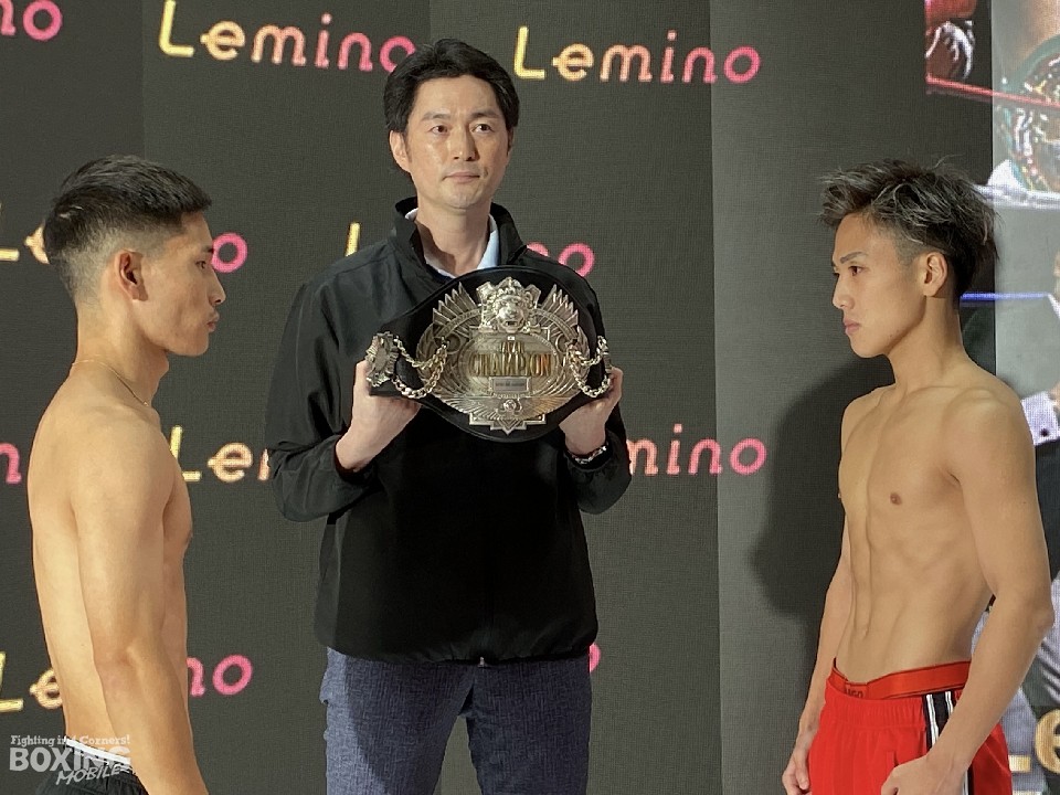日本ミニマム級王座決定戦の前日計量が24日、ドームシティ内blue-ing!(ブルーイング)DISCOVERYで行われ、同級1位の森且貴(24=大橋)と同級2位の松本流星(26=帝拳)の両者が計量に臨んだ。