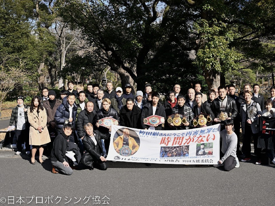 本日、1966年の静岡県一家4人殺害事件で、強盗殺人などの罪に問われ死刑が確定した元プロボクサー袴田巌さん(88)に対するやり直しの裁判(再審)で、静岡地裁は無罪判決を言い渡した。日本プロボクシング協会では、委員会を設けて袴田さんの支援を続けており、中谷も支援アピール集会に参加した。着陸後にネットニュースで無罪判決を知ったという中谷は、「ホッとしたという気持ちでいっぱい。たくさんのボクサーが支援されて、自分自身も参加させてもらって、思いを伝えさせてもらった。形になって良かった」と喜んだ。