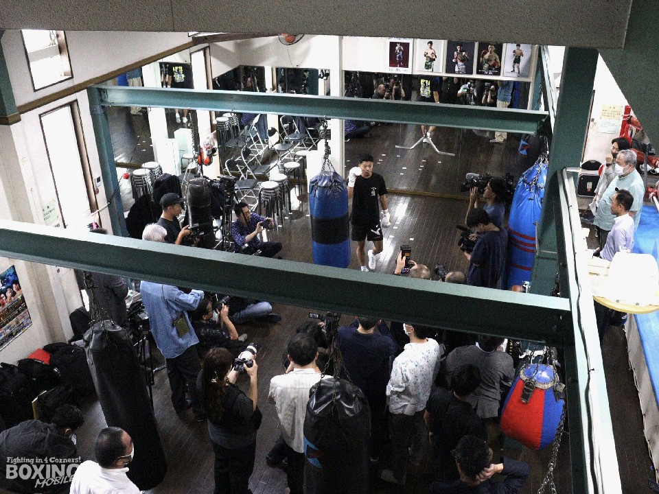 会見後には、シャドーボクシングとサンドバッグを1ラウンドずつ披露。グッと踏み込んで強烈な左オーバーハンド、右フックを叩き込み、調子の良さを伺わせた。