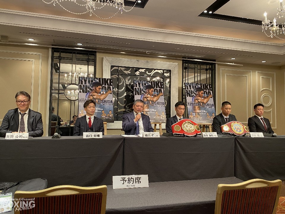 枝川会長が、会見に同席したU-NEXT TVスポーツ本部、矢田公司本部長に、「西田はどういう試合をしたらいいですか?」と聞いた。すると、矢田本部長は、「ダイナミックグローブを引き継ぎ、WHO'S NEXT DYNAMIC GLOVE on U-NEXTを配信させていただいている中で若い選手が活躍している。第1回目の世界戦なので、華々しくKOで勝ってもらえるとありがたい」と注文をつけた。