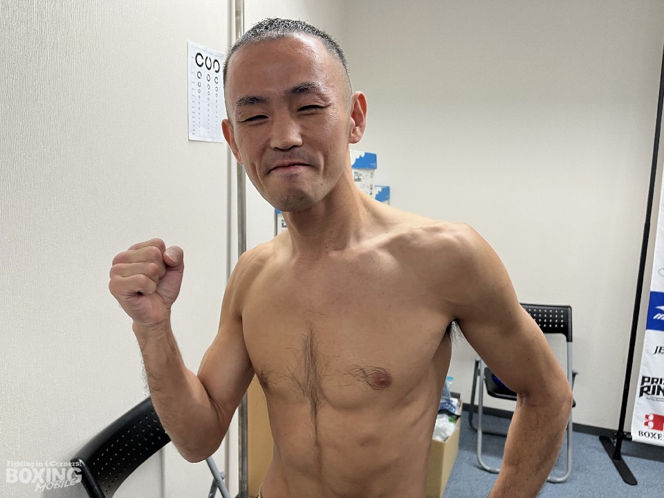 やや緊張した様子の宇津見も53.4kgで計量を終えると、「今までとは、質の違った緊張感があります。この試合に向けた覚悟はできた。今まで、ボクシングと(本気で)向き合ってなかったんじゃないかと思った。これは大きな収穫。試合前に気づけてよかった」と大一番に向けて、気持ちを入れ直した。JBC非公認のIBFアジアタイトルに挑戦した経験もあるが、日本タイトル戦は、大きな意味を持つ。「環境を整えてもらった。ひと月前から、仕事も休ませてもらった。無駄な時間をなくしていった」と、ジムや職場の仲間に感謝の気持ちを伝えた。