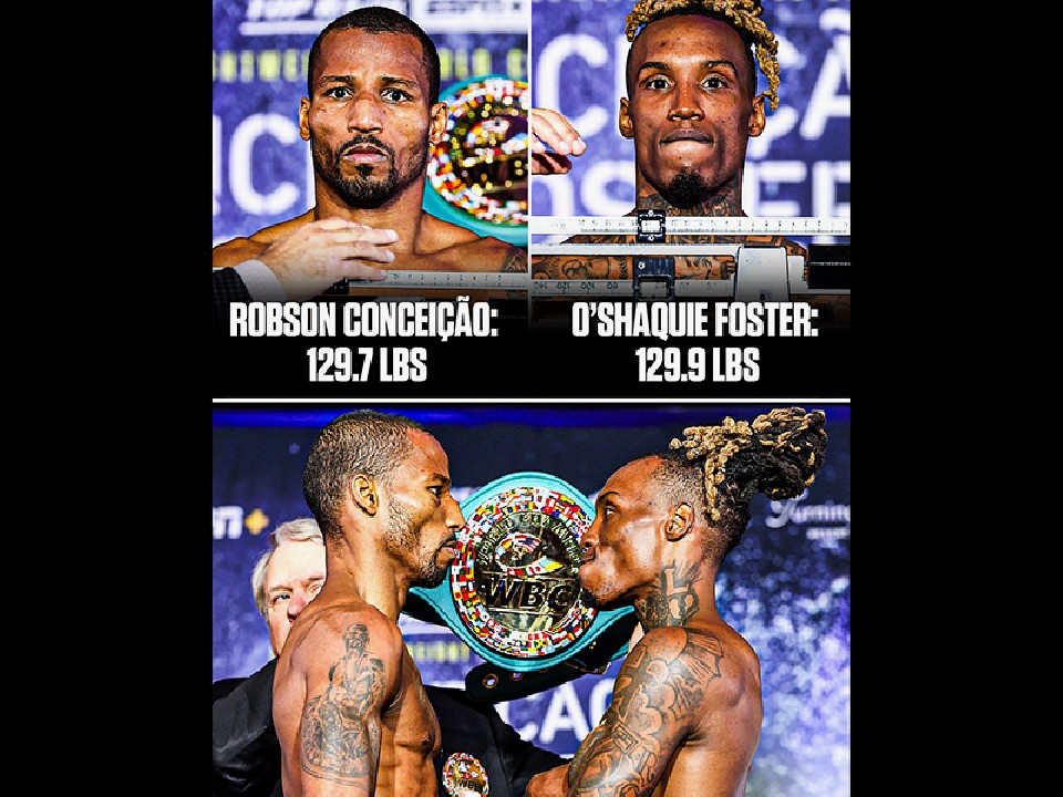 WBC世界スーパーフェザー級王者ロブソン・コンセイサン(36=ブラジル)と、前王者オシャキール・フォスター(31=米)が現地時間2日、米国・ニューヨーク州ベローナのターニングストーン・リゾートカジノで、ダイレクトリマッチのための前日計量を終え、フェイスオフで火花を散らした。