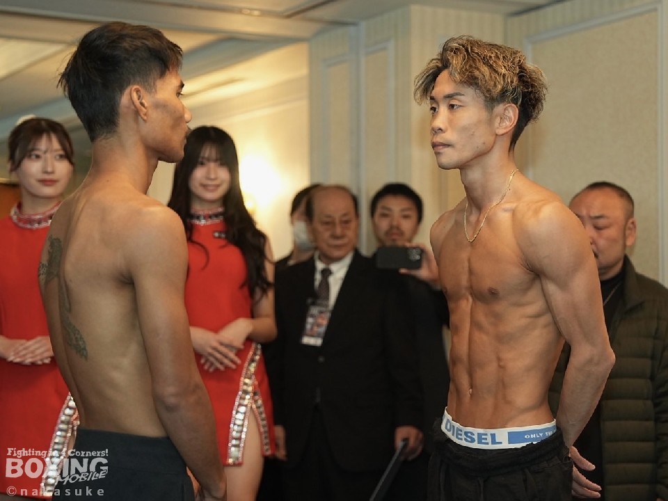 OPBF王座2度目の防衛戦を迎えるタノンサックは、「この試合に向けて、タイでも日本でもたくさんスパーリングをしてきた。並んでみて、矢吹(矢吹正道=LUSH緑)の方が大きいと思った。明日は私が勝つ」と静かに闘志を燃やした。
