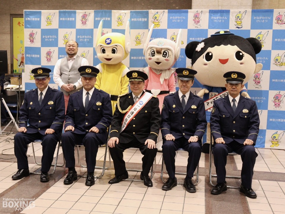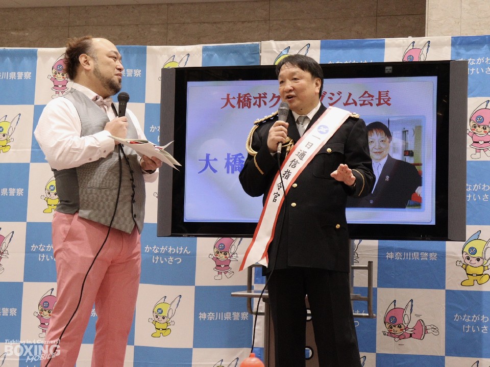 大橋ボクシングジムの大橋秀行会長が9日、神奈川県警の一日通信司令官に任命され、模擬的な110番対応を行った。さらに、横浜駅東口新都市プラザで行われた「110番の日」イベントでは、トークショーも実施された。