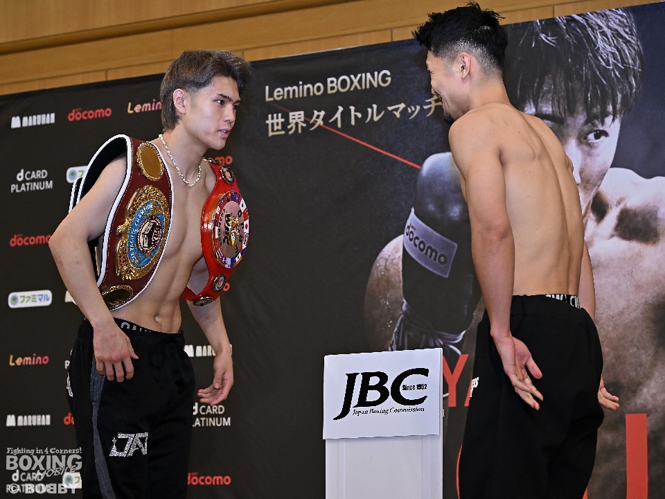 ウェルター級アジア2冠タイトルマッチの前日計量が23日、横浜市内のホテルで行われ、OPBF東洋太平洋とWBOアジアパシフィックの2冠王者の佐々木尽(23=八王子中屋)と元日本同級王者の坂井祥紀(34=横浜光)が気合を入れた。