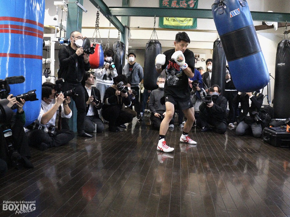 会見後には、シャドーボクシングとサンドバッグ打ちを1ラウンドずつ披露。ポジションを意識しながら、キレのある右フック、左ストレートを打ち込む姿が印象的だった。