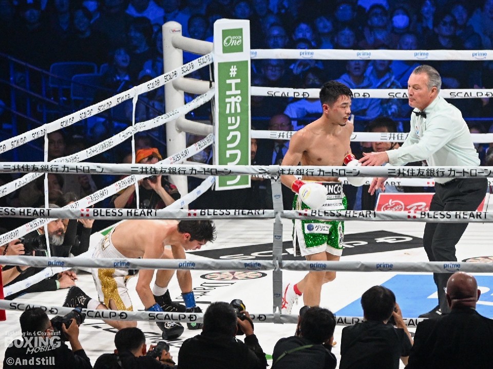 長身サウスポーの中谷にとって、クエジャルは初めての身長が高い選手だったが、まったく問題にせず圧勝した。「クエジャル選手は上体が立っていて、重心が動いていなかった。前に出て来てくれたので、距離感を早めに掴むことができた。最初は狙い過ぎてしまったが、KOにつなげることができた。ボディが効いたのがわかったので、上下に打ち分けた。ニックネームの『ビッグバン』のような試合ができたと思う」と振り返った。