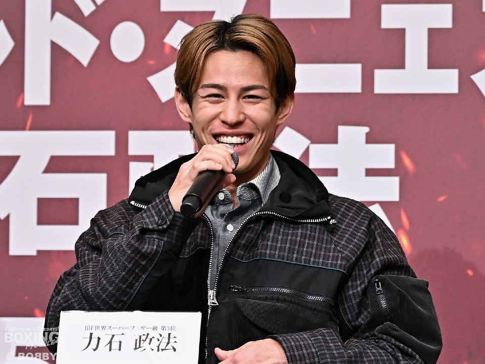 力石は、「自分がいるスーパーフェザー級は、内山高志さんや畑山隆則さんが世界チャンピオンで馴染みがあったが、最近は挑戦するのが難しい階級になっている。やっと来たチャンス。中量級から日本人の世界チャンピオンが出ていない中、アンディ君(平岡アンディ=大橋)、佐々木選手(佐々木尽=八王子中屋)が世界戦の予定があるが、自分が先陣を切って世界を獲りたい。チャンスは一度しかないと思っている」と覚悟を示した。