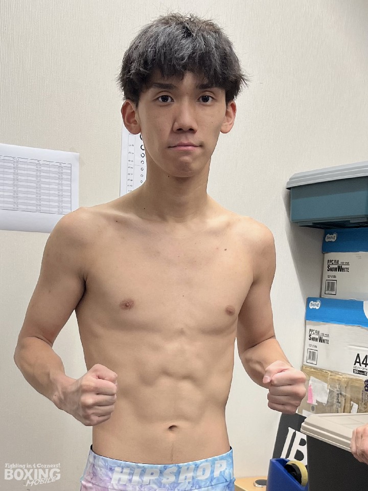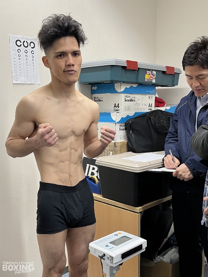 48.8kgで難なく計量をクリアした高見は、「コンディションはバッチリ。いつも通り迎えられた。文句なし、いい練習もできてきた。バッチリです」と、好調ぶりを報告、自身初の日本タイトル戦が決まったことに、「気持ちが上がった。強いチャンピオンに挑戦できるので楽しみ。帝拳ジムの選手はタイトルラッシュしてるので、自分も」と、流れに乗りたいところ。注目の若武者は、「これをクリアできたら、世界を視野に入れていきたいが、まずは、目の前の試合を大事にしたい」と、目を輝かせた。