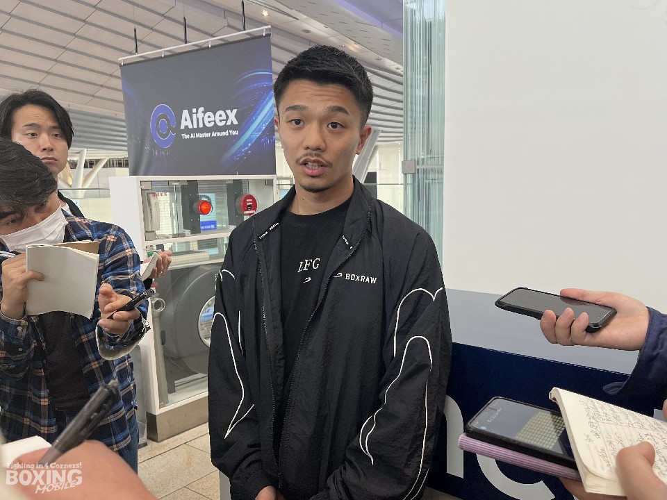 人気と知名度も高まる中、「昨日、ラーメン屋さんで声をかけてもらいました」と、感謝の気持ちを伝えた。空港でも一般の方にも自身の存在に気づかれるようになったことにも「ボクサーらしく夢を与えられるようになりたい」と、穏やかな表情を見せた。