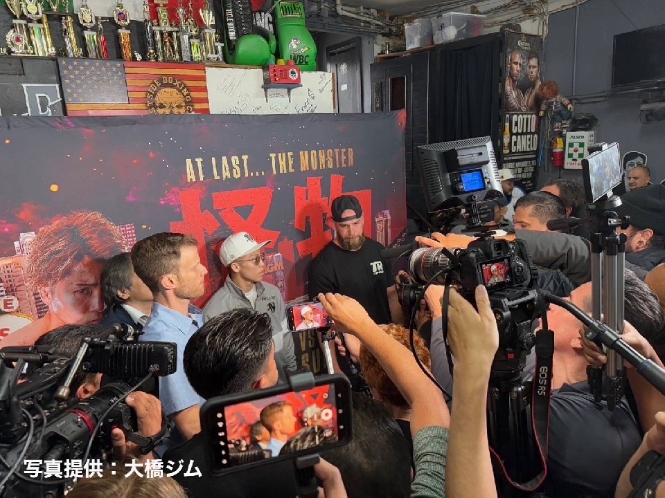 14時開始予定の公開練習だったが、12時半にジムに到着したため、予定を早めて練習をスタート。公開練習には、70名を超える日米の記者が小さなジムに集まった。