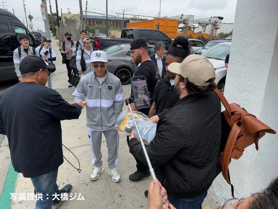 世界スーパーバンタム級4団体統一王者の井上尚弥(32=大橋)が米国時間の23日、定刻どおりにロサンゼルスに到着すると、公開練習のため、空港から直接、ロサンゼルス市内にあるWest Side Boxing Clubへ向かった。