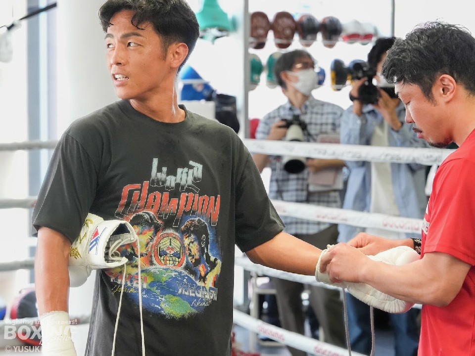 八重樫東トレーナーは、「映像で見る以上に(対峙したら)やりにくさがありそう。上手くごまかされると嫌な展開になる」と挑戦者を警戒。その上で「武居はキックボクシングの距離(ロングレンジ)で戦っていく中で、どのタイミングで倒しにいくかが重要」と、武居独特の間合いが勝負のカギだとした。