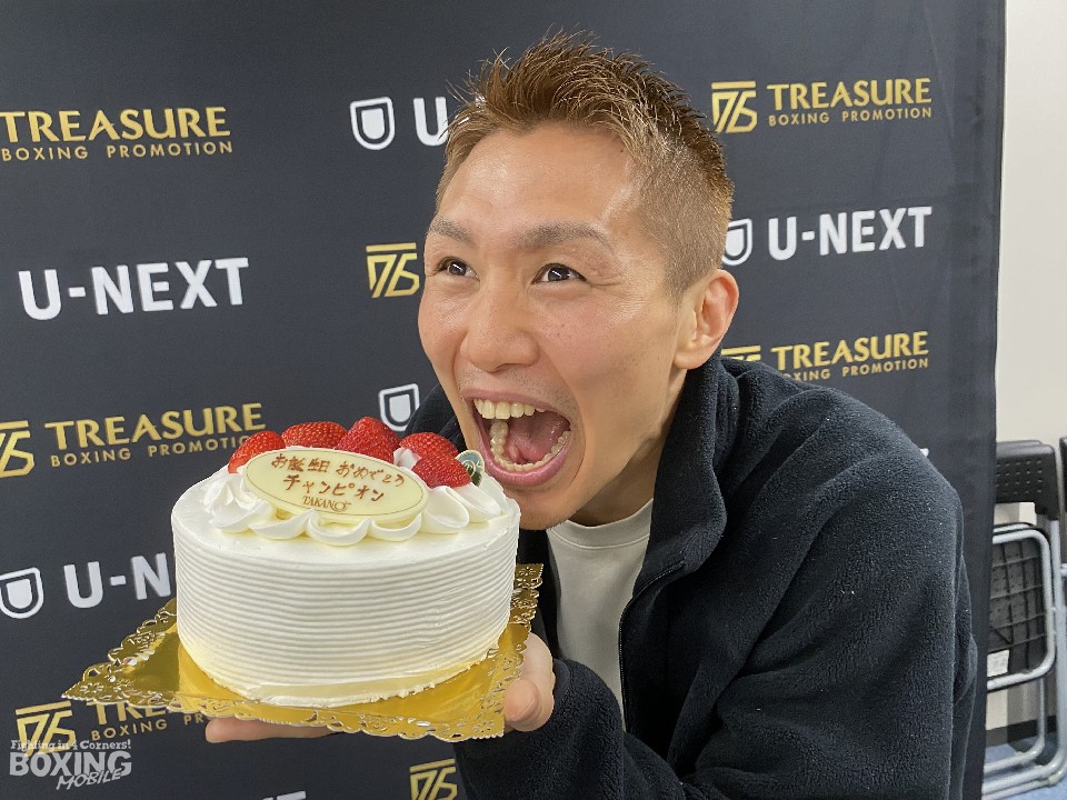 本日で37歳の誕生日を迎えた。角海老宝石ジムの鈴木眞吾前会長からサプライズのケーキが届き、写真撮影でおどけながらも、「勝って最高の誕生日にしますよ〜!」と意気込んだ。