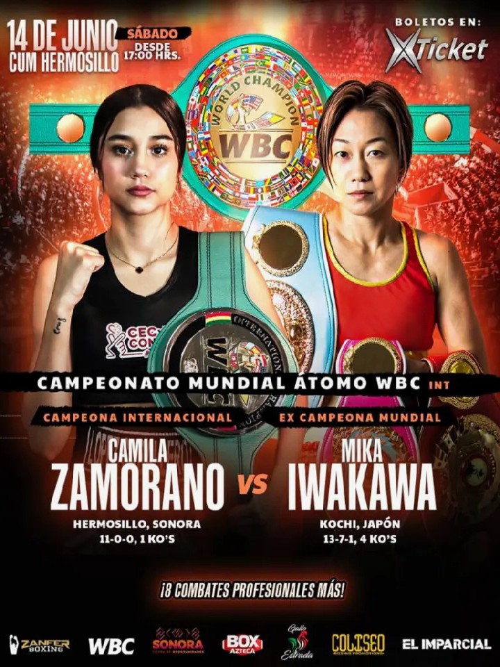 試合は6月14日(土)にメキシコのソラノ州エルモシージョ市 で行われる。現在、WBC 女子アトム級4位の岩川が対戦するのは、WBCアトム級インターナショナル王者で、WBC世界同級8位のカミラ・サモラノ(17=メキシコ)。戦績は11 戦 11 勝 1KO。