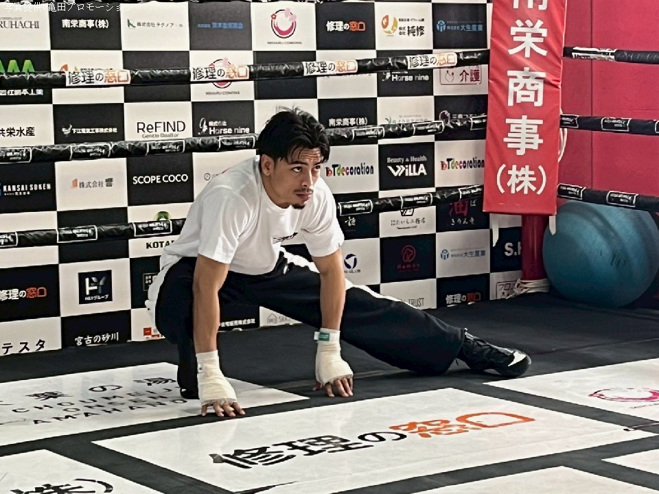 会見後に行われた公開練習は、リング内でのウォーミングアップからシャドーボクシング2ラウンド、サンドバッグ打ちを2ラウンド披露。試合5日前とは思えない軽やかな動きを見せたが、亀田和毅が所属するTMK陣営や亀田史郎トレーナーが視察に来ていることもあり、本来のオーソドックススタイルではなく、終始サウスポースタイルのまま公開練習を終えた。